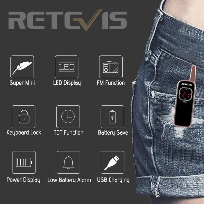 | 2pcs Retevis RT642RT42 Mini Walkie Talkie PMR Radio PMR446 FRS FM Radio Rechargeable Portable Two Way Radio Handy Walkie-Talkie |